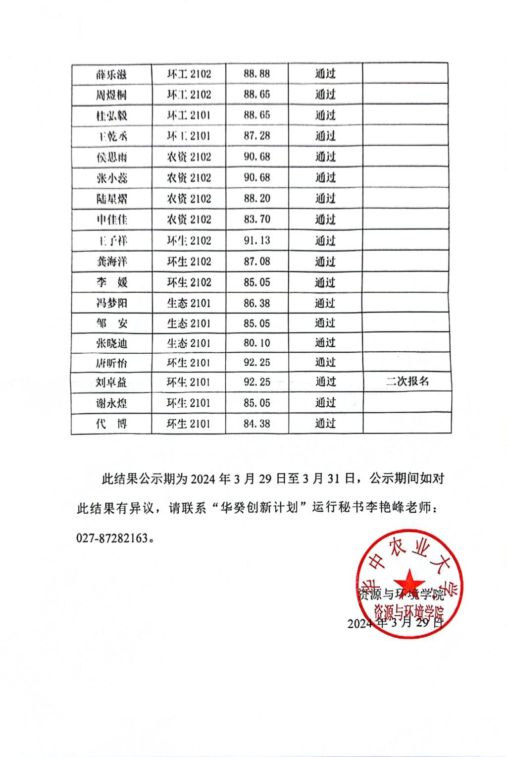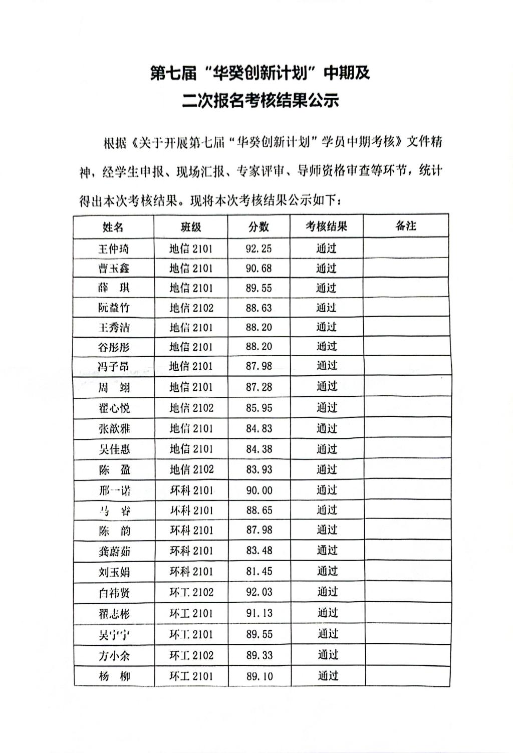 第七届“华癸创新计划”中期及二次报名考核结果公示