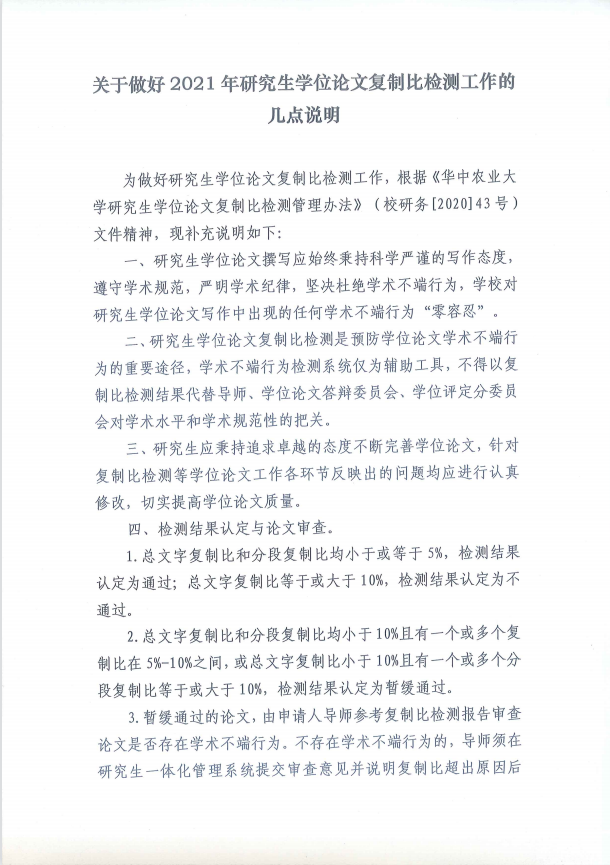 关于做好2021年研究生学位论文复制比检测工作的几点说明