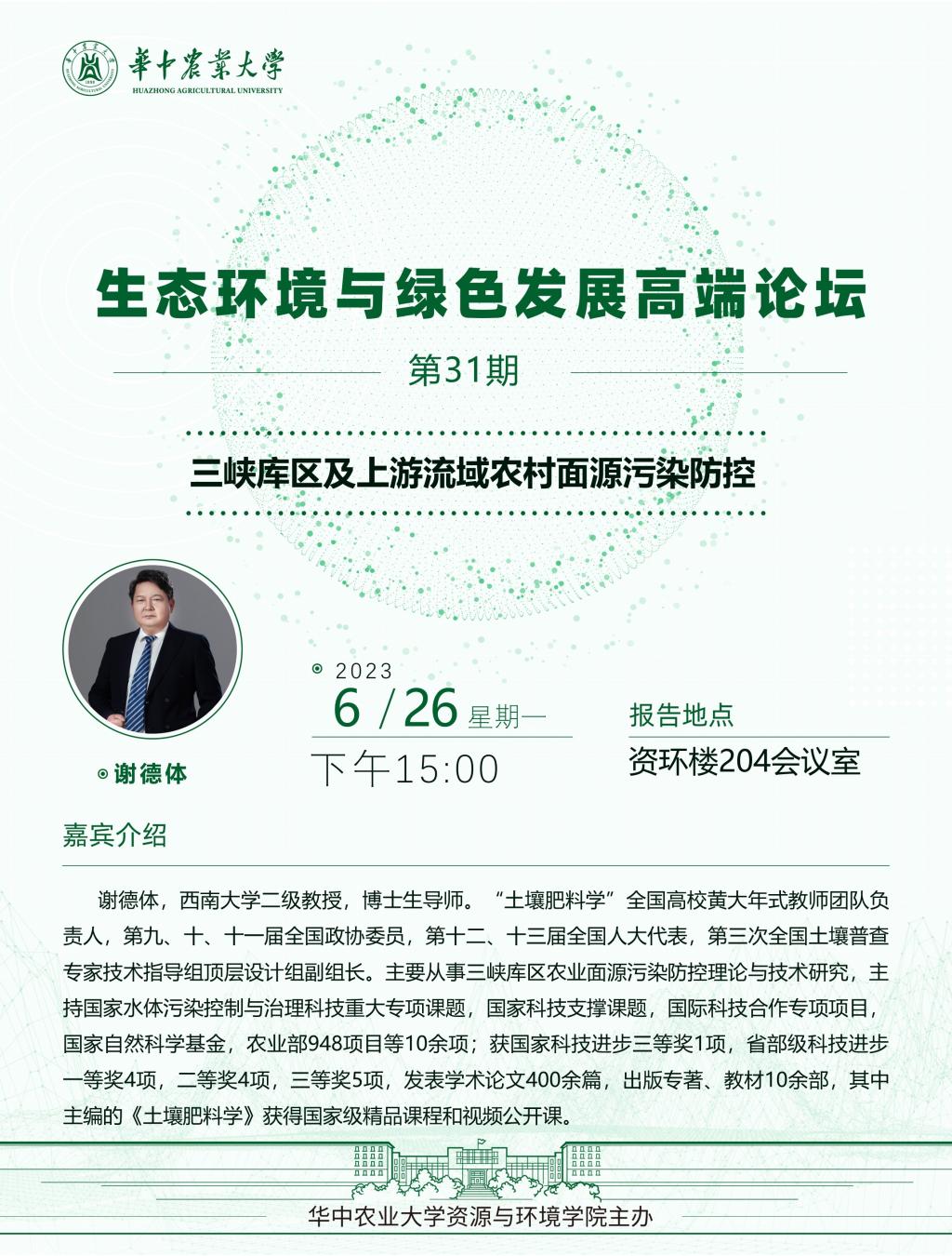 【高端论坛】31期:三峡库区及上游流域农村面源污染防控