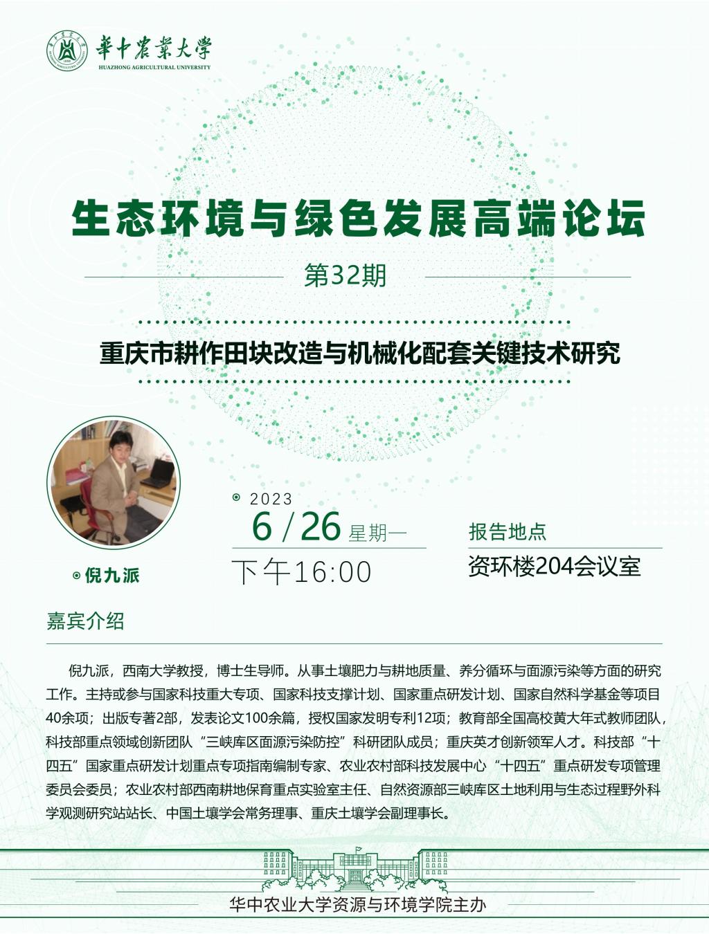 【高端论坛】32期:重庆市耕作田块改造与机械化配套关键技术研究