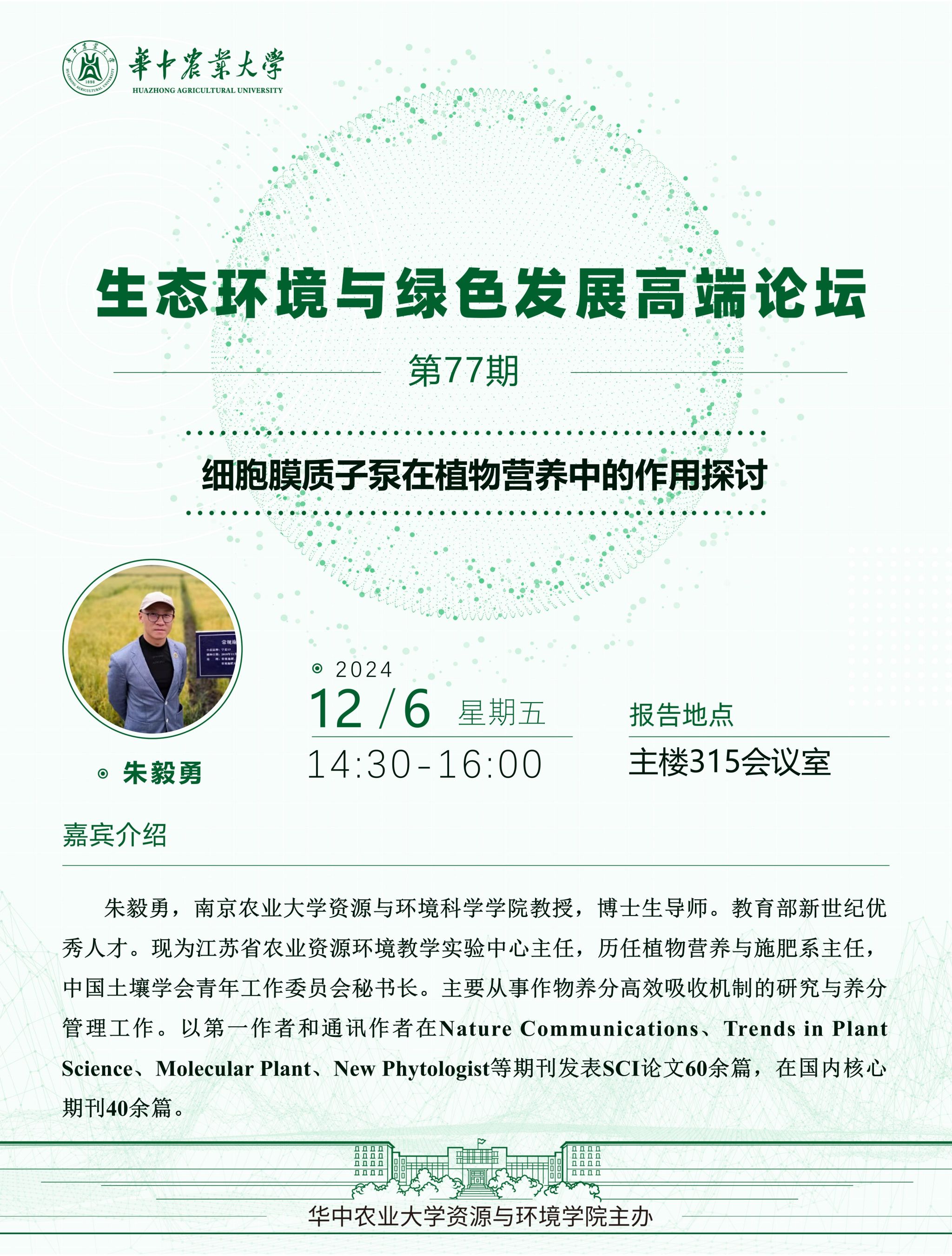 【高端论坛】第77期:细胞膜质子泵在植物营养中的作用探讨