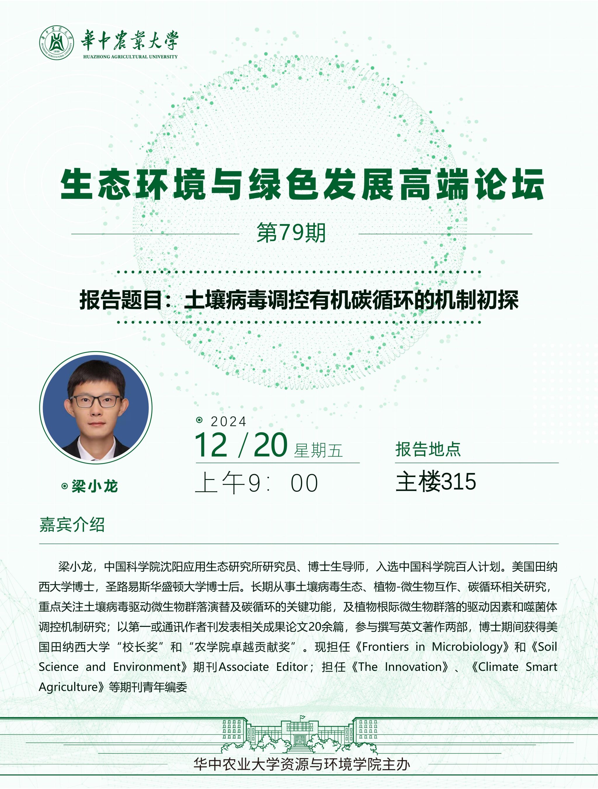 【高端论坛】第79期:土壤病毒调控有机碳循环的机制初探