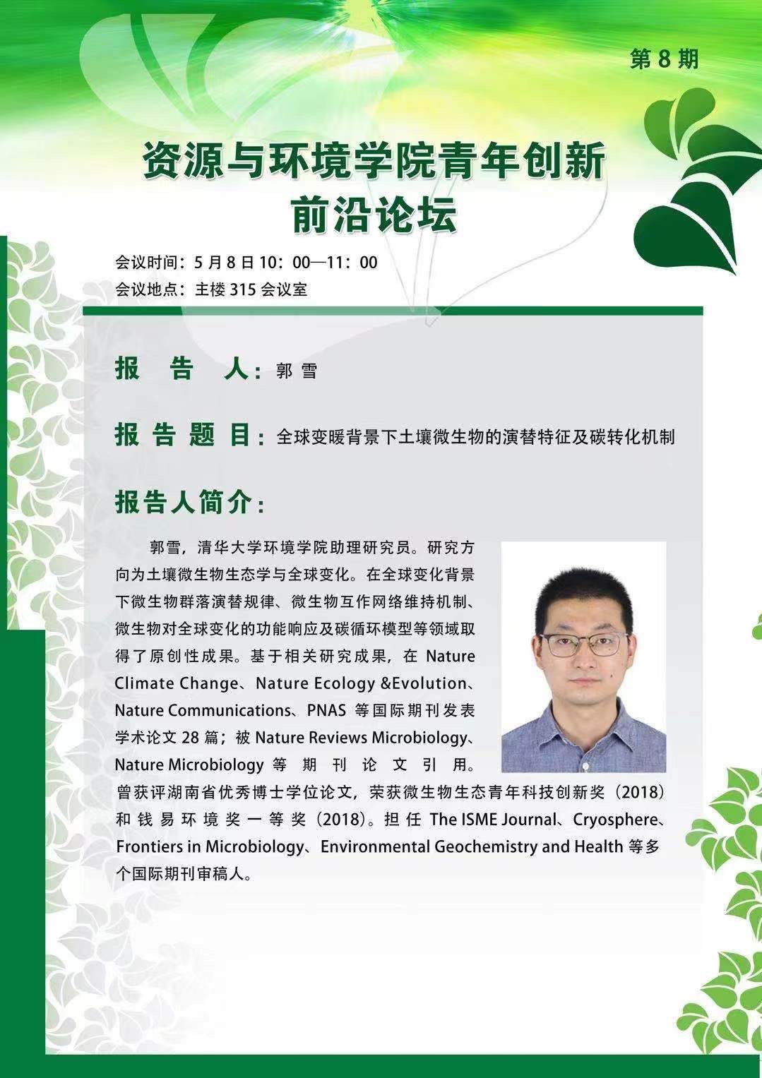 【青年创新前沿论坛】全球变暖背景下土壤微生物的演替特征及碳转化机制