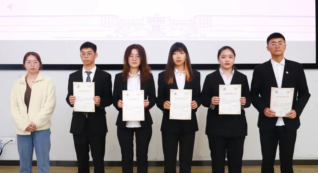 会议的最后,到场嘉宾为党团学青主席团成员及各部门负责人颁发了任职纪念证书。