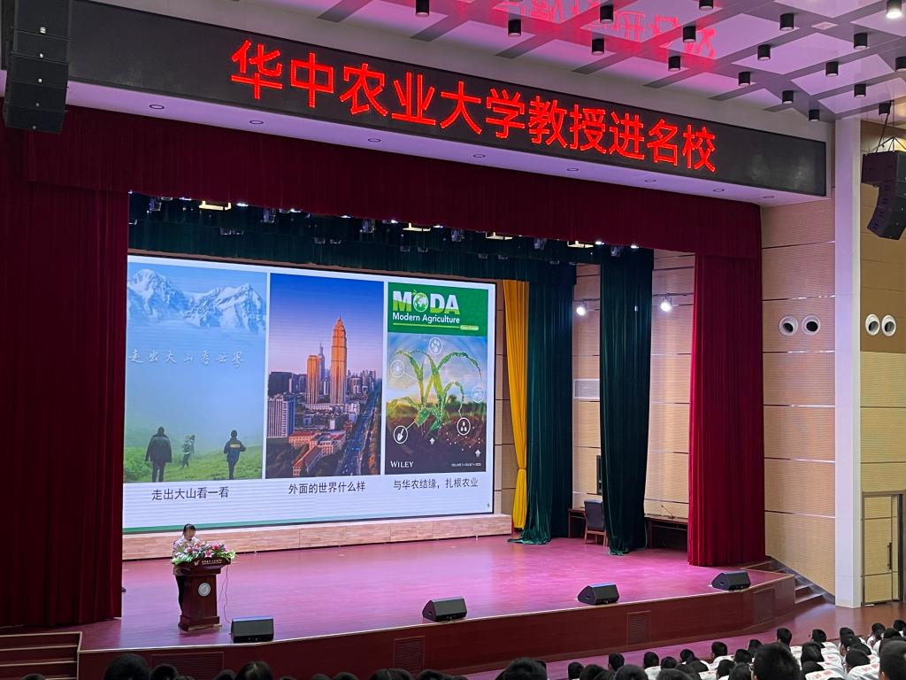 “极端条件下的农业生产是什么样的?”“未来农业的发展趋势有哪些?”,4月27日至28日,学院副教授张文君老师、辅导员甄诚等一行前往湖北省十堰市竹溪县第一高级中学开展“华农教授进名校”系列活动,作为竹溪县第一高级中学2002届毕业生,张文君以学姐的身份面向高二年级1000余名学生以“山清水秀滋五谷,方寸寰宇索真源--资源与环境对生活的影响”为题作专题科普报告。