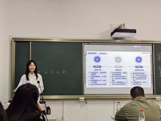 环工类2204班方姝婕代表“肥水智流自家田”团队首先阐述了我国严重紧缺的水资源、低效率的水分生产效率与化肥利用率、经受污染的农业环境、日益紧缺的农业劳动力等问题,并解释其团队的水肥一体化技术可以很好地将施肥与灌溉结合,可以很大程度上地实现环保、节水、节肥、省人工。在国家有利的政策推动下,水肥一体化技术的创新传播将会成为改变现代农业生产方式、提升农民生产效能的关键动作。