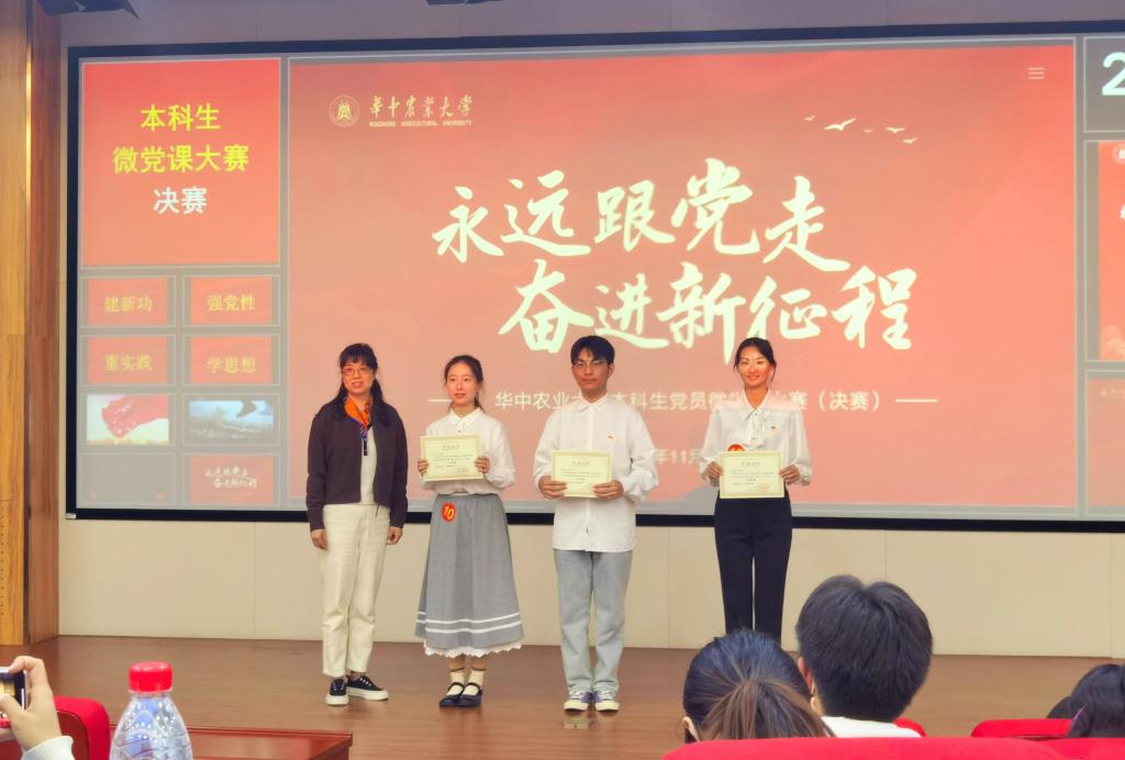 11月10日晚,华中农业大学“永远跟党走,奋进新征程”微党课大赛决赛在微生物国家实验室B座1楼报告厅举行,全校14个学院的24名同学参赛,共决出一等奖2名,二等奖3名,三等奖5名。学院本科生第一党支部许涛与本科生第五党支部方小余代表nba88看球 参赛,许涛同学荣获二等奖。