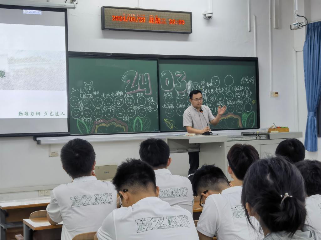 在环工类2401班的班会上,副院长蔡鹏和同学们分享了自己作为土生土长华农人的求学经历,他希望同学们在良好的校园氛围中找到个人目标、全面发展,为将来的自己交上一份满意的答卷。