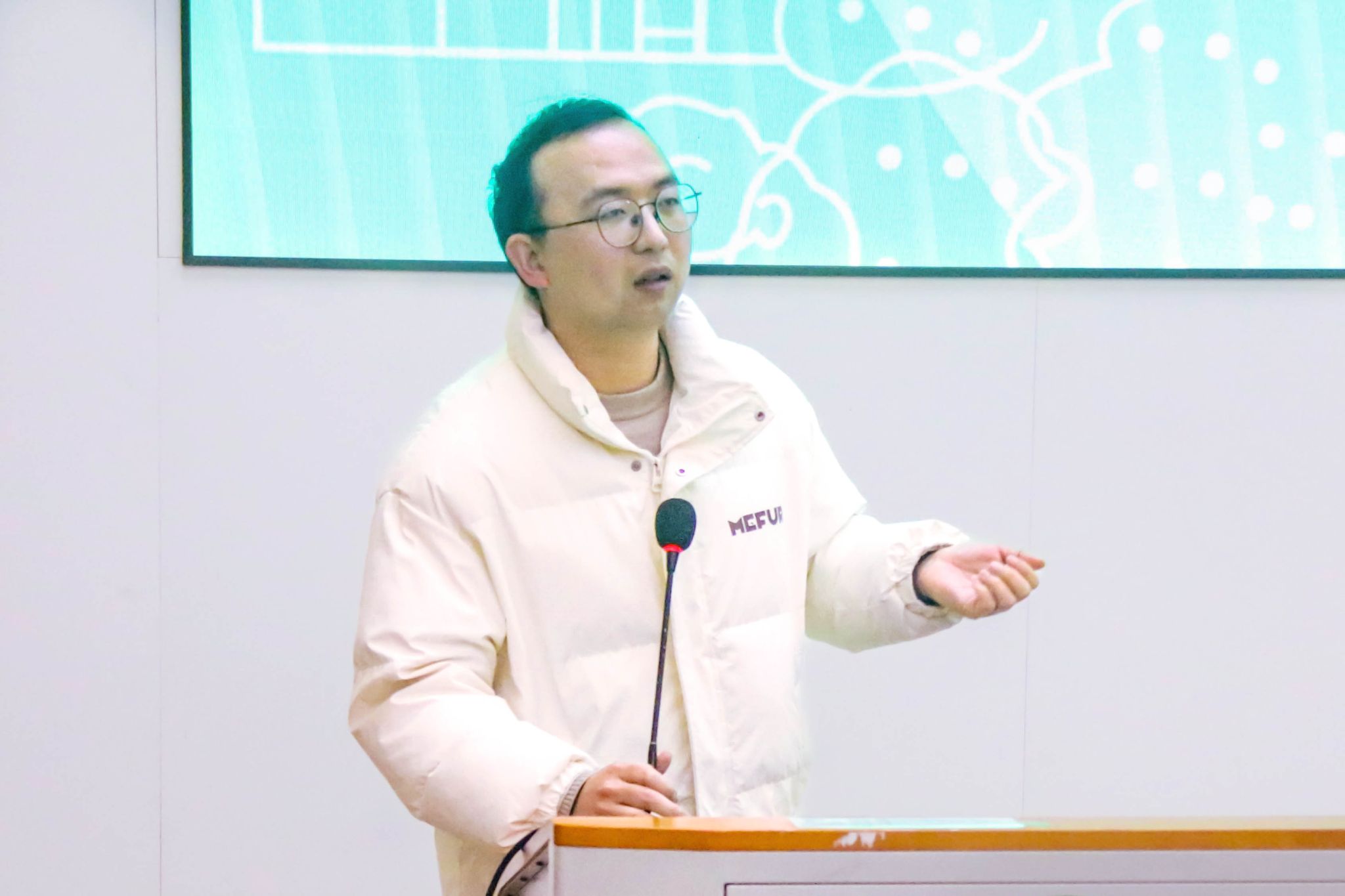 “创新是人类进步的源泉,青年是创新的主力军。”生命科学技术学院辅导员、团委书记梅斌受邀进行创新创业宣讲。他指出,参与“挑战杯”“互联网+”等赛事,不仅能助力保研升学、提升简历竞争力,更能打破专业壁垒、提升综合素质。“通过跨学科组队、商业计划打磨和答辩实战,学生将完成从知识积累到应用转化的跨越。”梅斌以指导项目为例,强调赛事能帮助学生接触前沿技术、拓展人脉资源及提高综合能力。