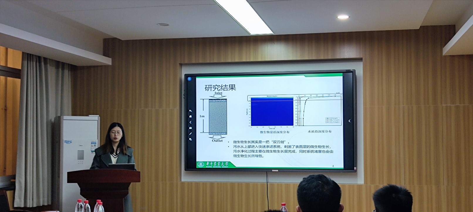 陈思琦的报告主题为《管理生物膜生长和堵塞提高快速渗滤池的可持续性》,主要从“文章内容”、“科研经历”以及“社会活动”三个方面进行分享。