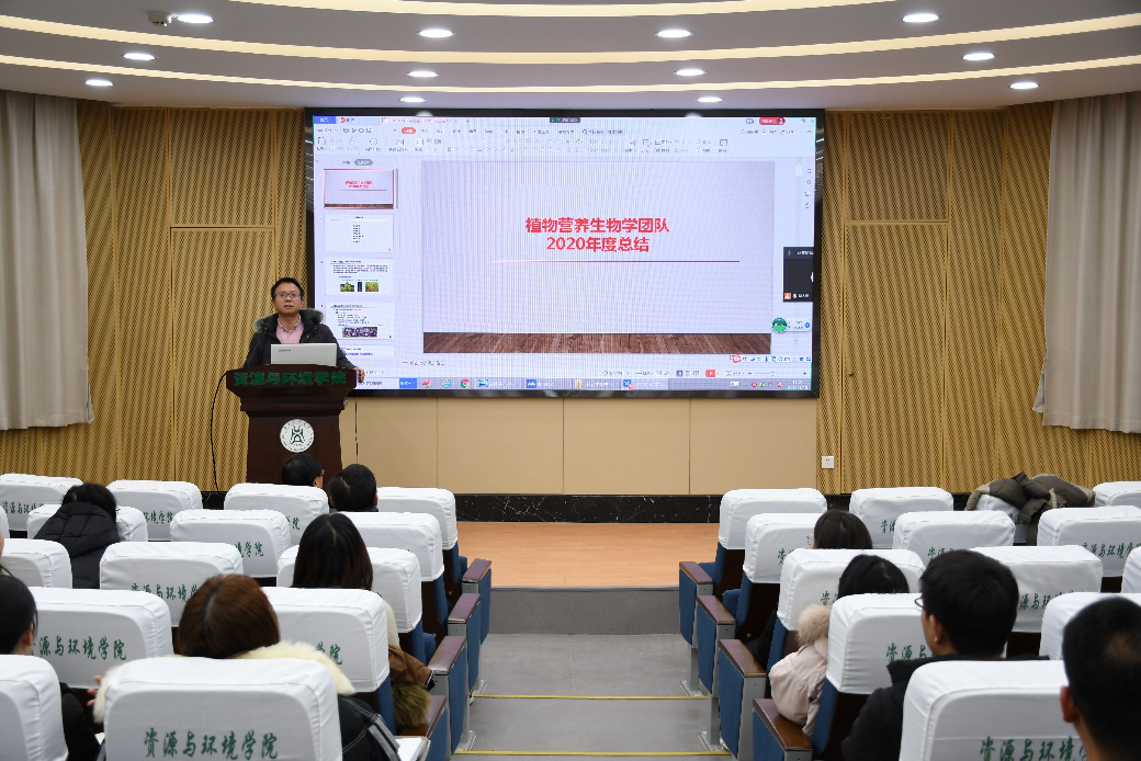 1月10日,nba88看球 植物营养生物学课题组2020年度学术年会在西附楼报告厅举行,徐芳森教授、石磊教授、王创教授、蔡红梅副教授、丁广大副教授和汪社亮副教授出席了会议,课题组全体同学参会。