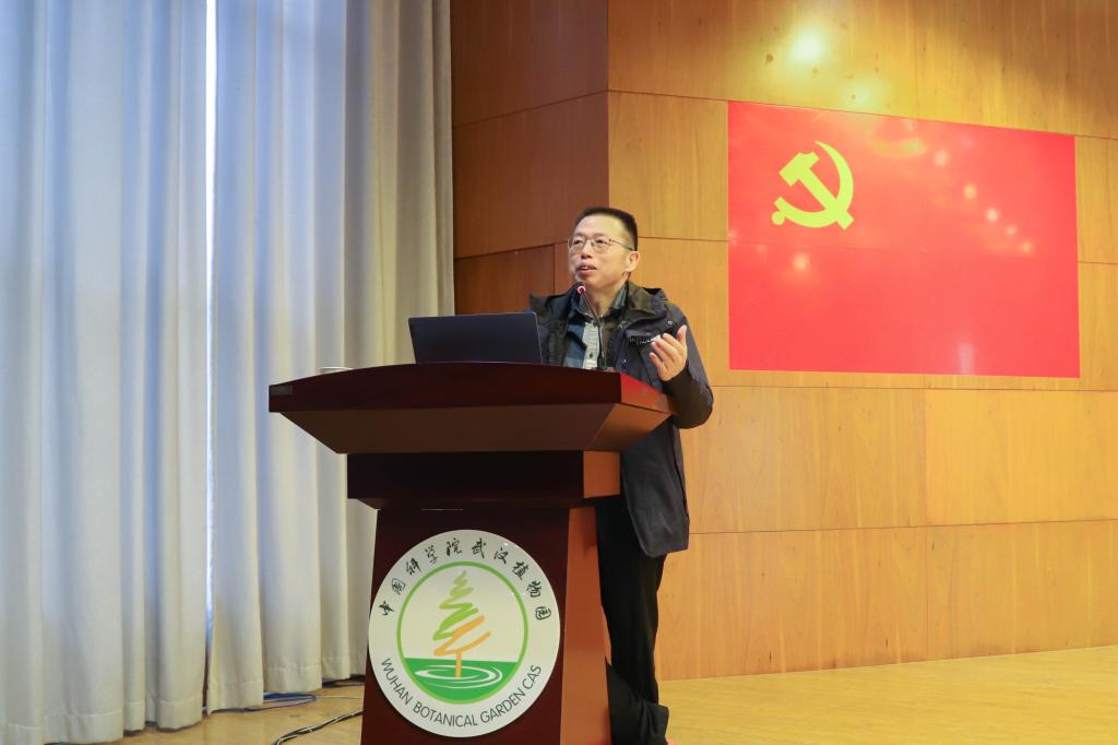 “为什么要重视森林保护?”,在主题学习报告会上,江明喜研究员从森林保护的意义出发,从森林的生态功能与服务谈起,带领大家走进森林,了解森林的垂直结构、植被演替等方面内容,带领大家正确理解碳达峰和碳中和的含义,探讨森林生物多样性的维持机制。