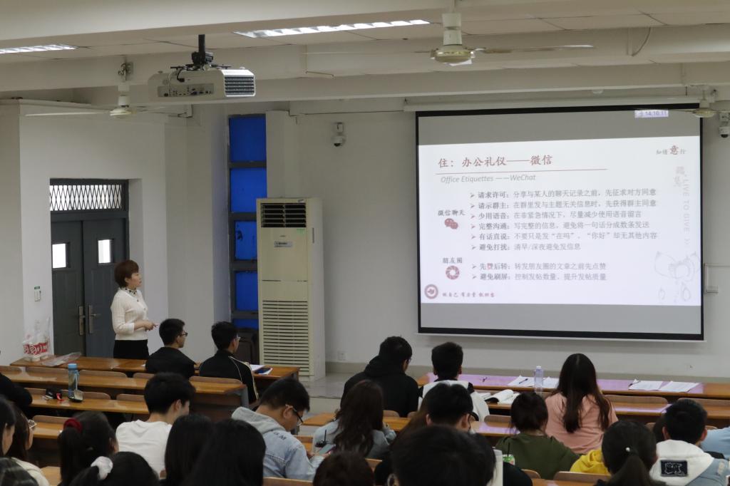 为帮助同学们更好地完成从校园到职场的转变,3月27日下午,由nba88看球 生涯规划与职业发展部主办的就业指导系列讲座之“职场礼仪”指导讲座于第三教学楼C205教室举办。讲座邀请了企业EAP高级执行师、职慧志愿讲师刘司玥女士担任主讲人。